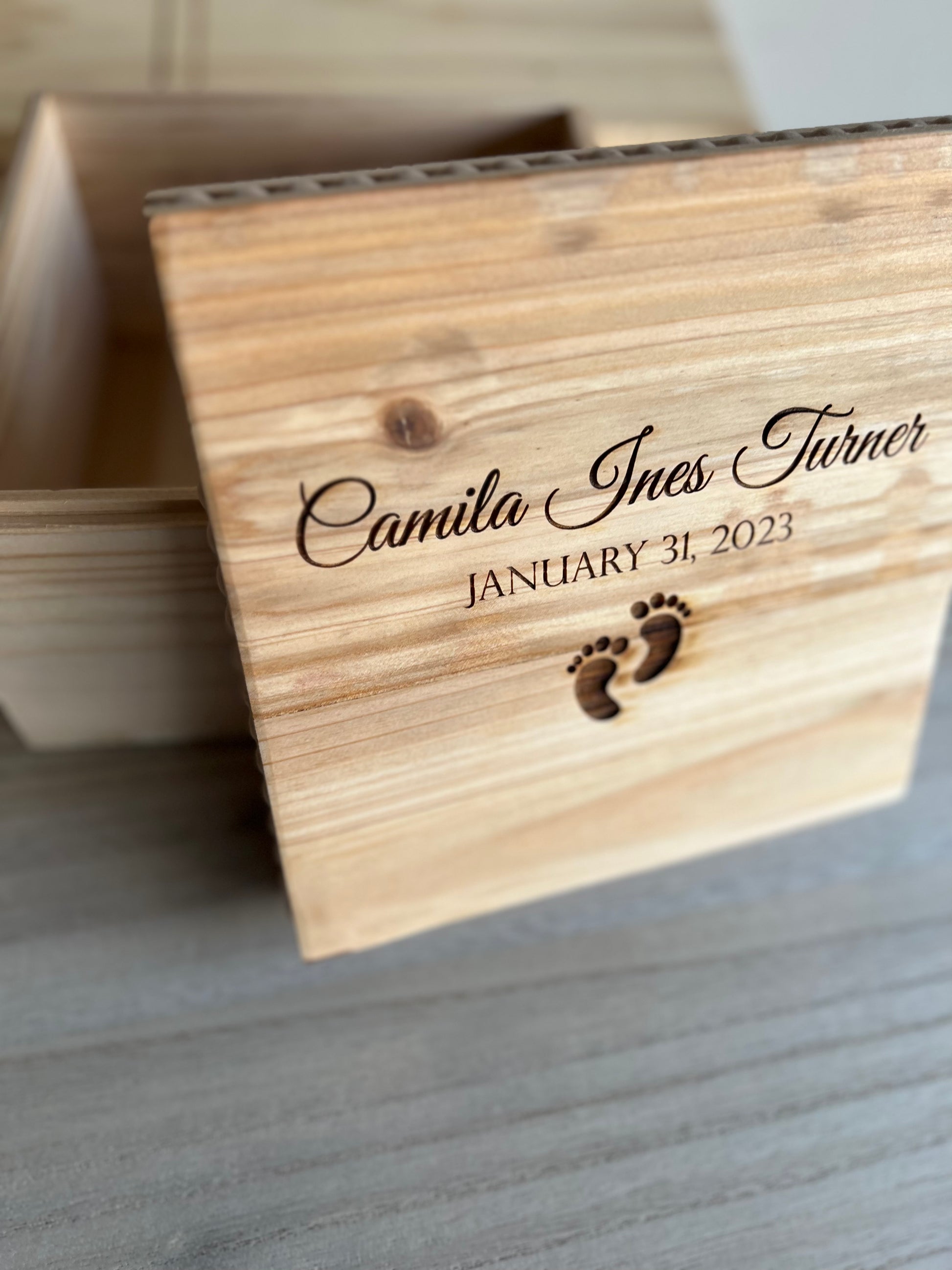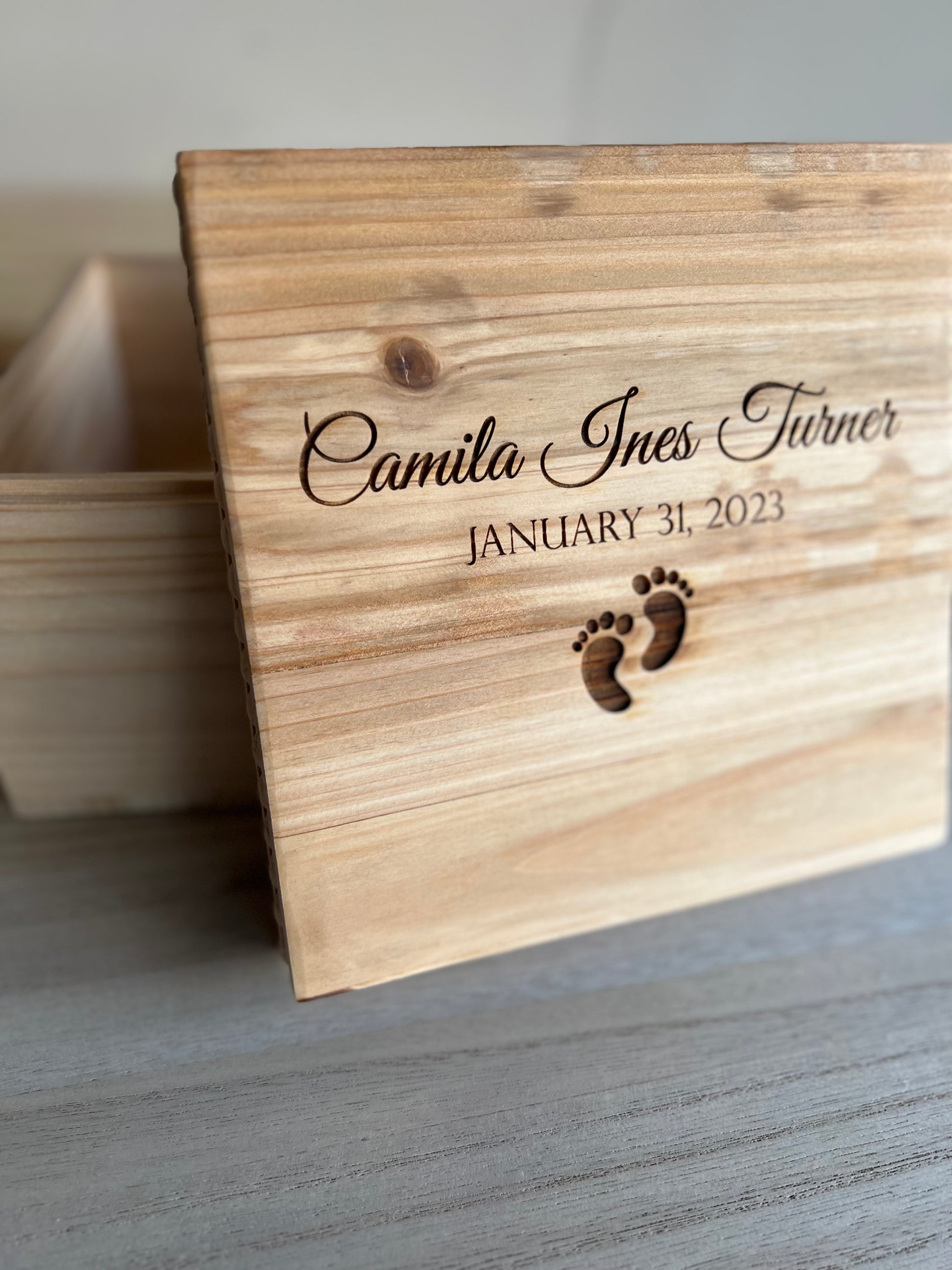 Keep all your baby items in one spot! Raw wood box that can be stained and personalized.